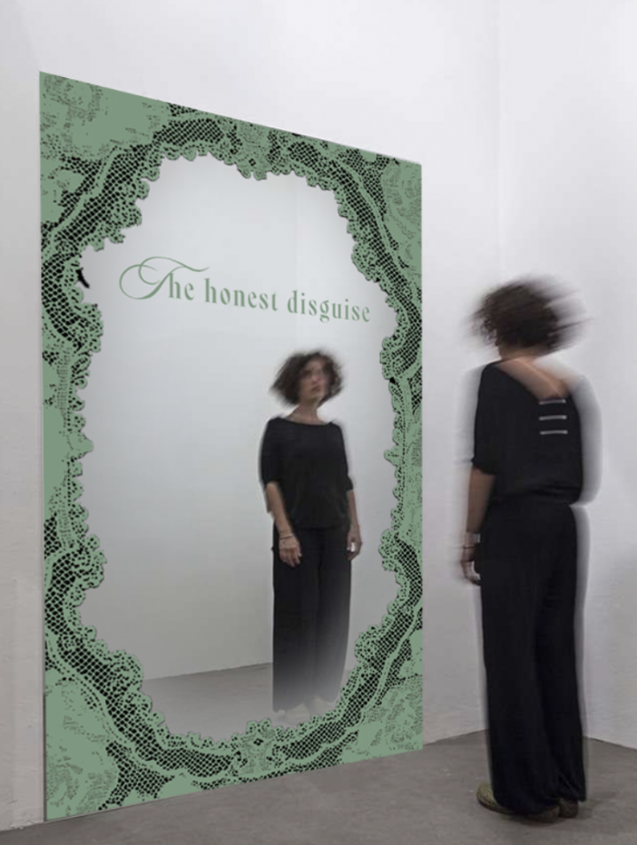 In the retail space, the theme becomes immersive. The store turns into a chamber of covered power, where layers awaken rather than conceal. At the center, a mirrored display reflects the force beneath, revealing manifesto lines only when you move close enough to claim them.