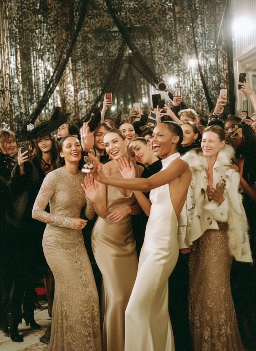 During NYFW, McQueen and Emma Chamberlain bring the layered lace world to life. She tries on pieces in-store, rides the black-and-white lace McQueen subway, and arrives at The Veil, a women-only space where ownership is entry and restraint becomes power.